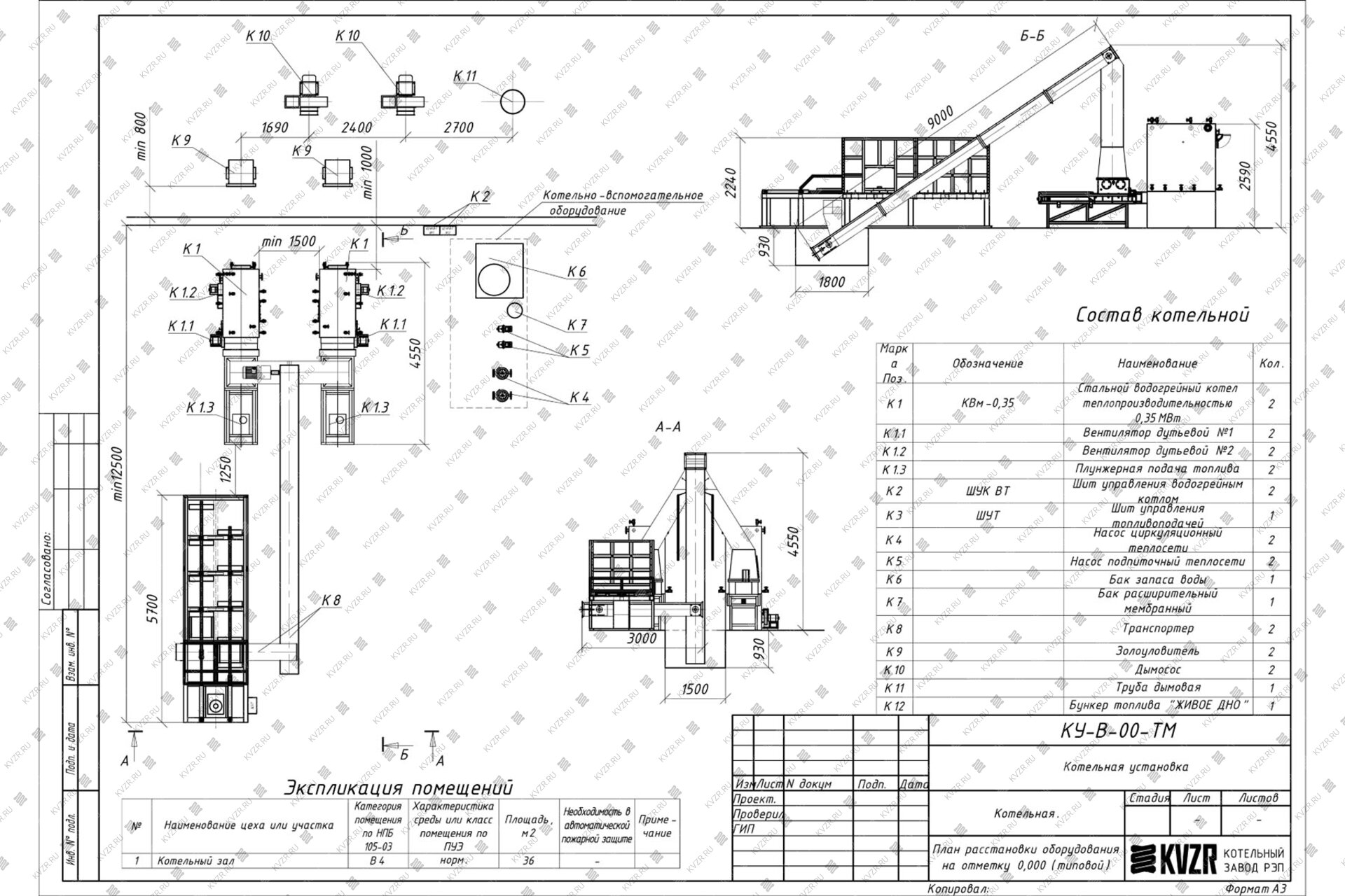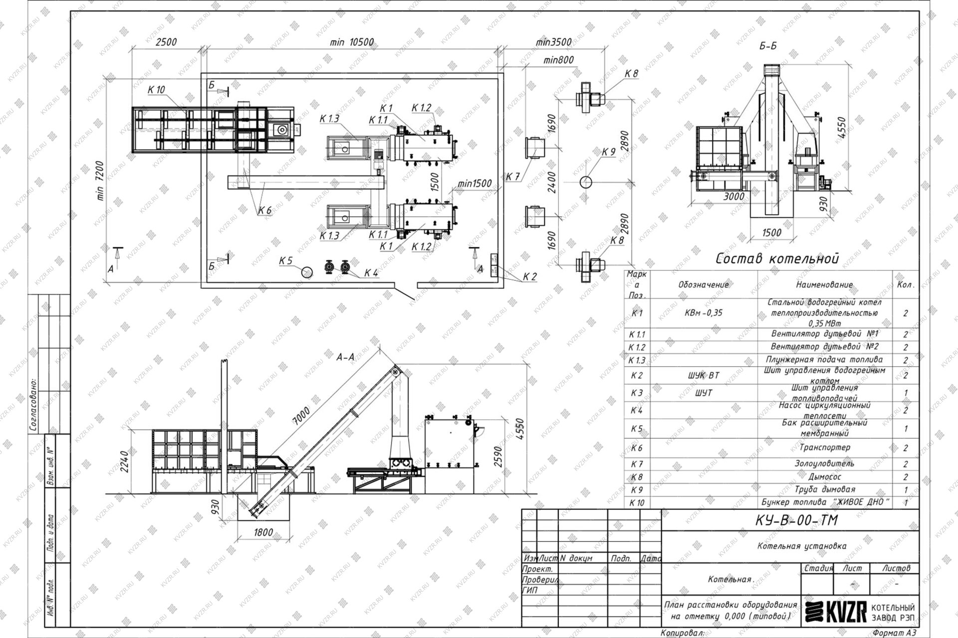 Монтаж водогрейного котла на опилках 630 кВт и вспомогательного оборудования в котельной должно производиться в соответствии с проектом и учетом требований СП 89.13330. 2016 «Котельные установки. Актуализированная редакция СНиП II-35-76» и «Правил устройства и безопасной эксплуатации паровых котлов с давлением пара не более 0,07 МПа (0,7 кгс/см2), водогрейных котлов и водоподогревателей с температурой нагрева воды не выше 388 К (115 С). Правильный монтаж котла – залог его надежной и долгой работы.